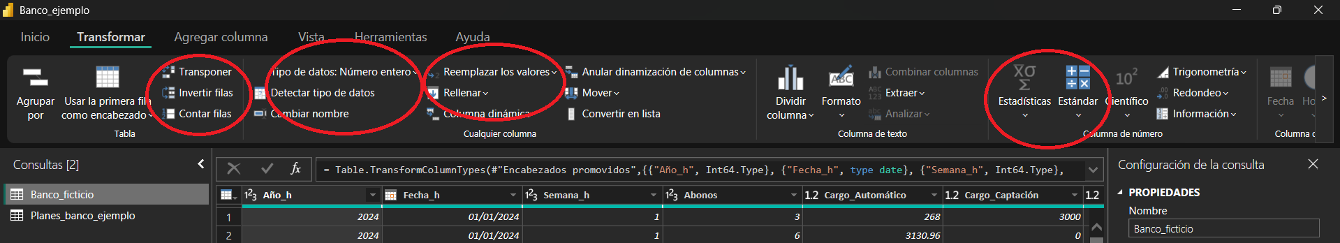 Transformar datos en Power Query.